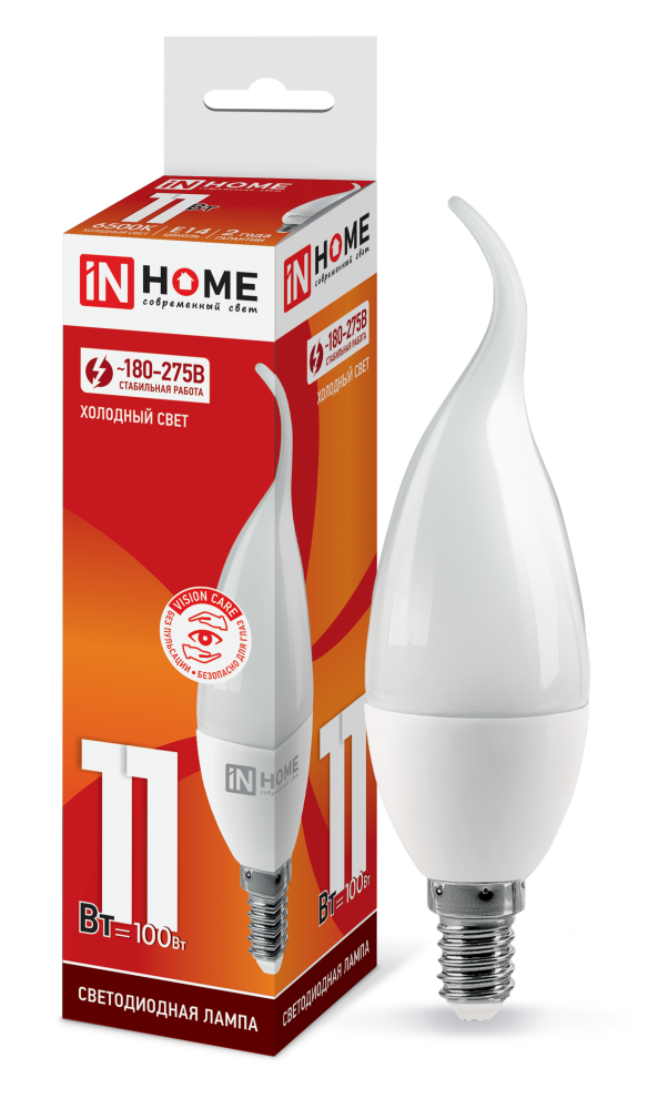 Лампа светодиодная LED-СВЕЧА НА ВЕТРУ-VC 11Вт 230В Е14 6500К 1050Лм IN HOME