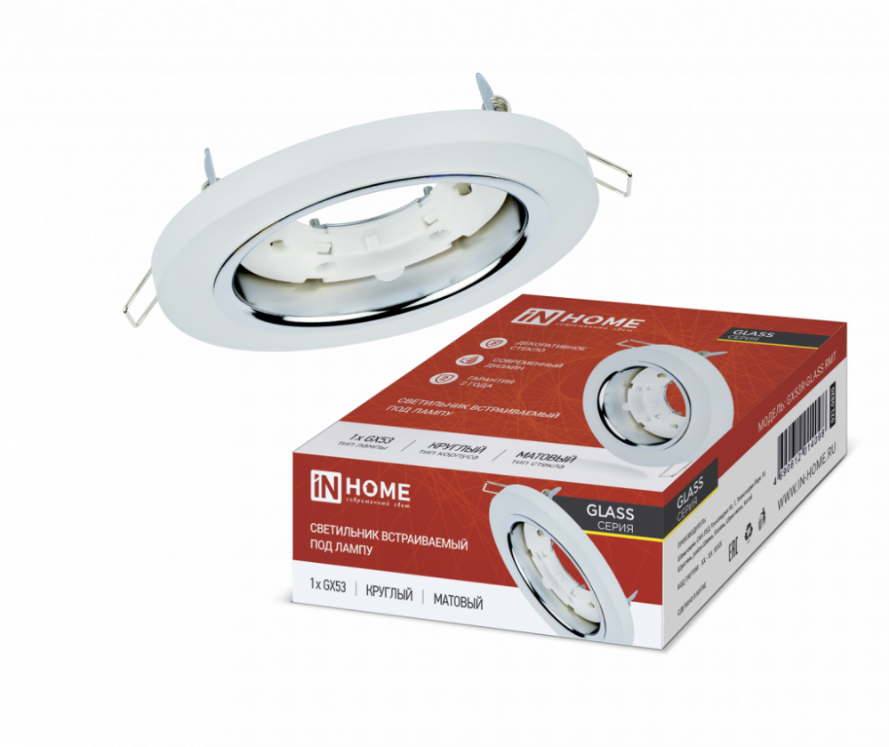 Светильник встраиваемый GX53R-glass RMT под лампу GX53 КРУГ СТЕКЛО 230B матовый IN HOME