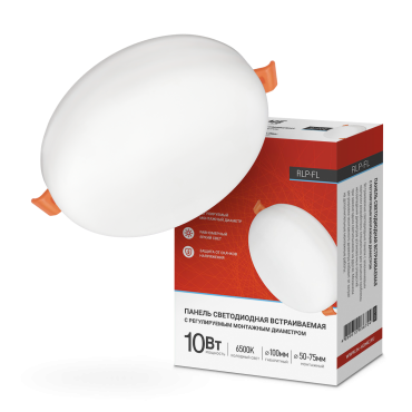 Панель сд встраиваемая безрамочная RLP-FL 10Вт 230В 6500К 700Лм 100мм с рег.монтаж. 50-75мм белая IP