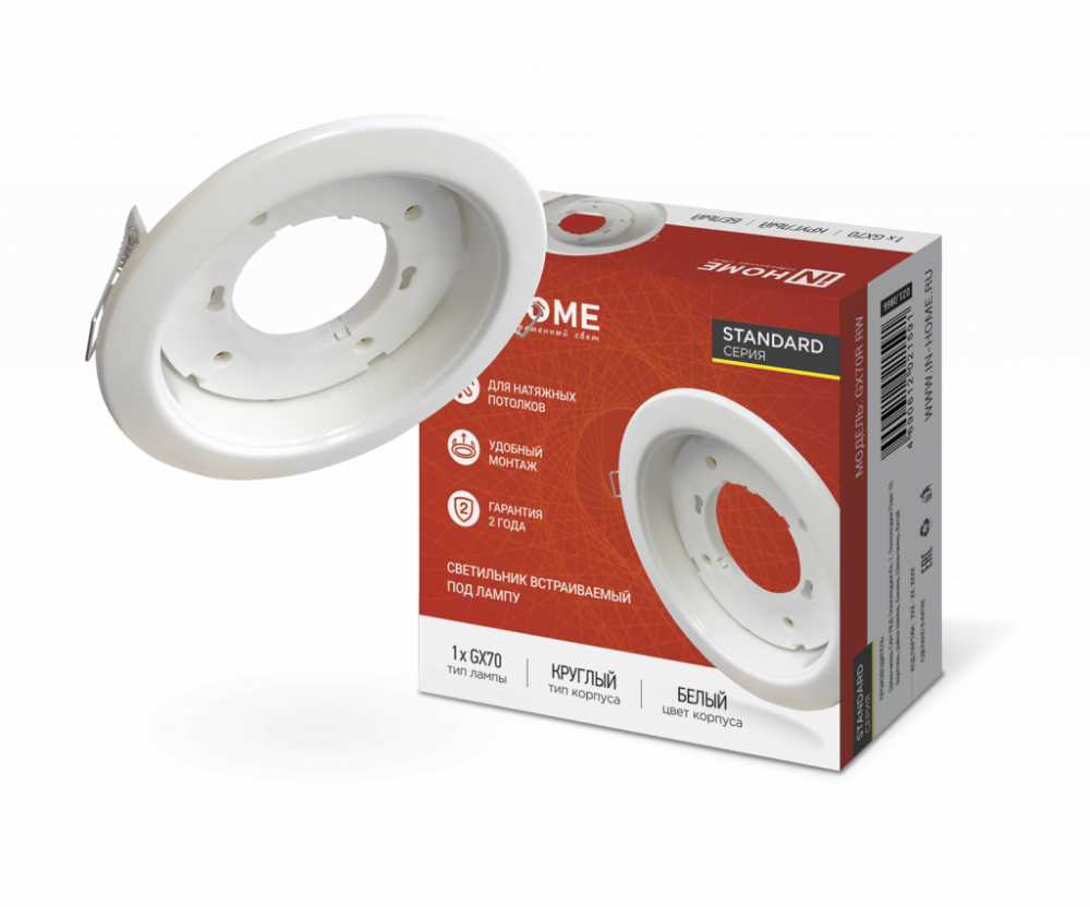 Светильник встраиваемый GX70R-W металл под лампу GX70 230В белый IN HOME
