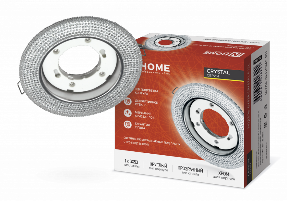 Светильник встраиваемый GX53R-crystal R12L под лампу GX53 с подсветкой 230B Прозрачный/ Хром IN HOME