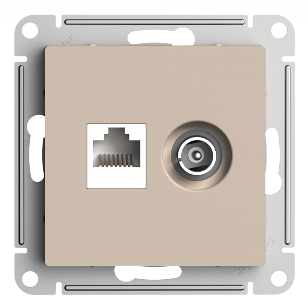 Розетка TV антенна + RJ45 кат.5E С/У Песочный AtlasDesign